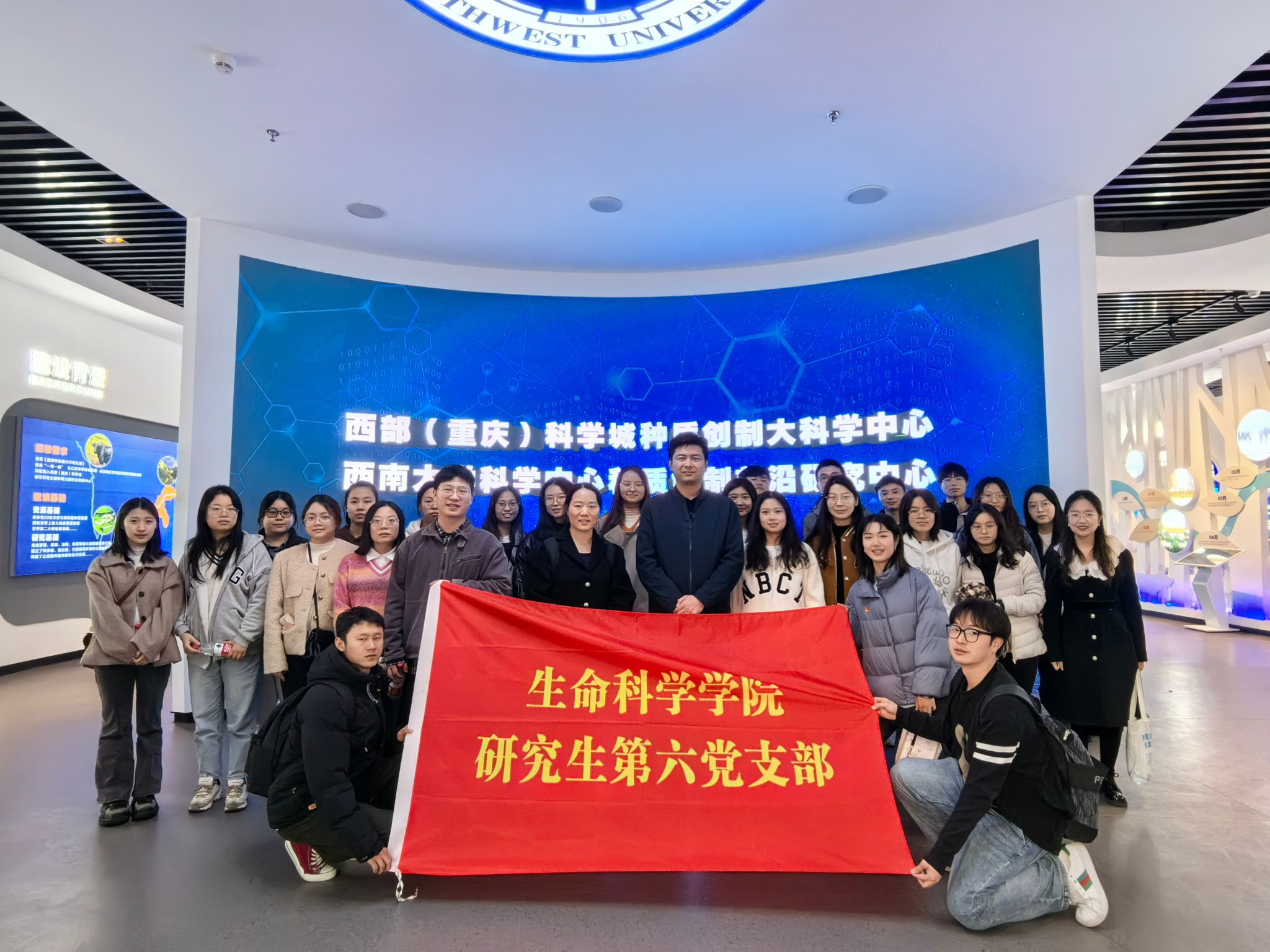 研金凤,悟科技。常主任带领支部同学们进行了大科学中心的参观。金凤实验室是重庆市落实成渝地区双城经济圈发展战略,为建设具有全国影响力的科技创新中心而打造的国家战略科技力量。西南大学和金凤科学中心充分发挥各自优势,共享科创资源、共建合作平台、共育高端人才,实现优势互补、共同发展。