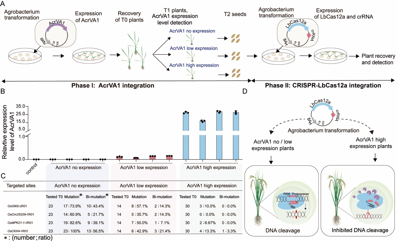 4、 通过AcrVA1的组成型表达微调水稻LbCas12a基因组编辑