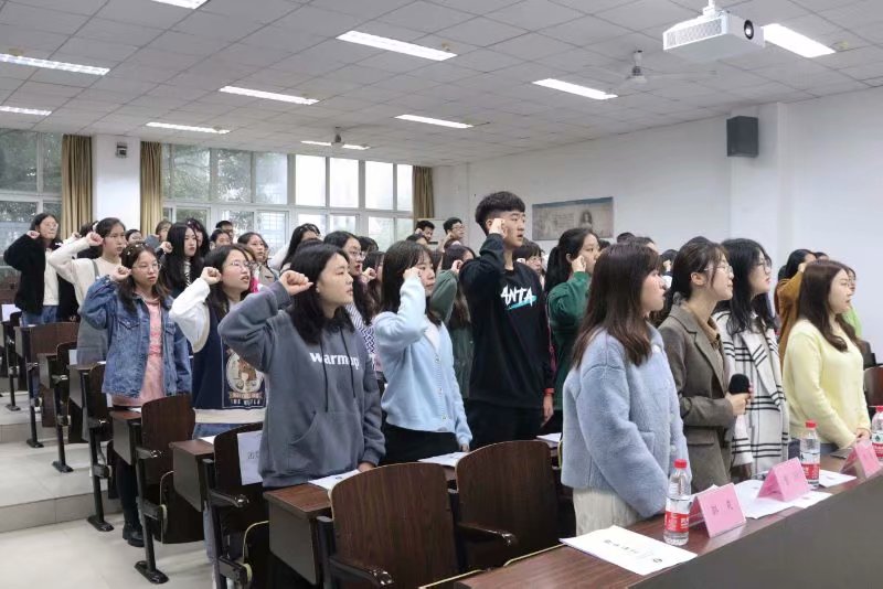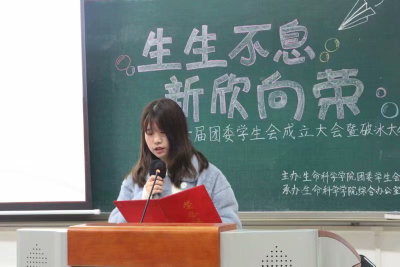 伴随着热烈的掌声,首先进行的是bw必威西汉姆联官网第十六届团委学生会成立大会。团委副书记邹爽首先宣读团委学生会全体成员名单。随后干部代表江虹霖进行发言,讲述了在她的心中作为部长应有的责任担当和榜样力量。“我属于西大,属于生科院,属于团委学生会。”干事代表蒋欣芮的发言道出了团委学生会带给她的那份难忘的归属感。执行主席曹玲在带领全体团委学生会成员宣誓之后进行了致辞,为团委学生会今后的发展做出了规划,提出了期望。接下来,综合办公室负责人林心怡为大家讲解了团委学生会章程及工作注意事项。大会的最后,全体成员面对着团旗,奏唱了团歌。