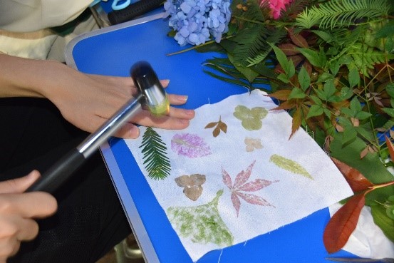 举行“敲敲留住人间草木”——植物敲染活动,通过知识普及、干事讲解指导、动手制作几个环节,让同学们亲手体验活动的完整过程,了解植物拓染绿色环保的理念,体现生态性、独特性,推广环保理念,推进生态文明建设教育。