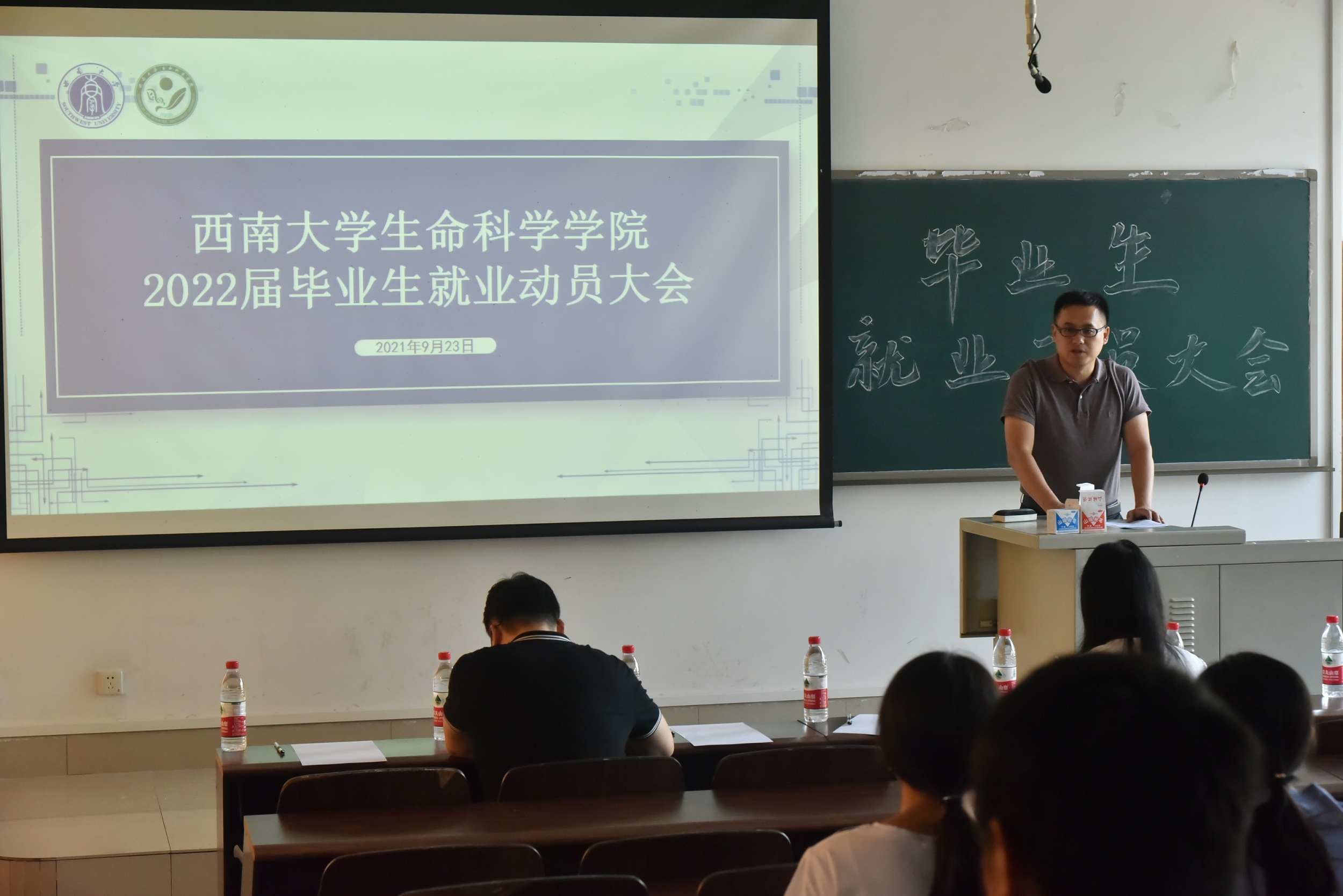 为进一步做好2022届毕业生就业工作,引导毕业学生树立正确的就业观念,鼓励应届毕业生积极就业,2021年9月23日上午10点,西南大学bw必威西汉姆联官网在28教301举行了2022届毕业生就业动员大会。学院党委书记蒋寒书记,智飞生物HR副总监赖倩,学院党委副书记、纪委书记陈渝,研究生辅导员谷彩霞老师、2018级本科生辅导员帅小蓉老师和2022届毕业生参加动员大会。会议由党委副书记石莹华主持。
