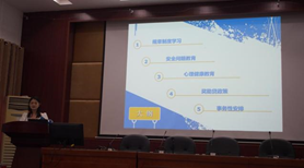 9月15日上午9点于14教224多功能报告厅在陈渝副书记、谷彩霞老师的的带领下,以研究生手册为重点,详细地为研究生新生们讲述了学院规章制度、安全教育和心理健康教育以及介绍奖助贷政策, 叮嘱每一位同学要对自己的身心健康有更多的关注,学会制定个人的学习计划。