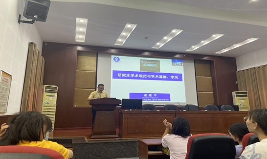 9月14日下午15点在14教224多功能报告厅谢建平老师为新生同学们开展了学术规范和学术道德教育。为帮助同学们树立正确的学术道德理念,谢建平老师自己的经验方法以及典型的学术不端事件为例,生动地为同学们讲述了如何严格做到遵守学术规范以及警惕、规避学术研究中不严谨造成的违规行为。