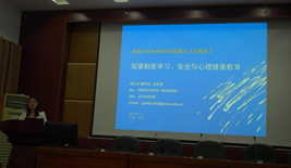 9月17日下午15点为了加强学生的健康教育知识,学院邀请校医院贾医生为新生们进行了身体健康讲座活动。讲解了目前全球艾滋病以及结核病流行现状、防治要点和目前西南大学的防控现状及对策,提醒新生们在学习之余也要注意身体健康,最大限度地预防疾病。
