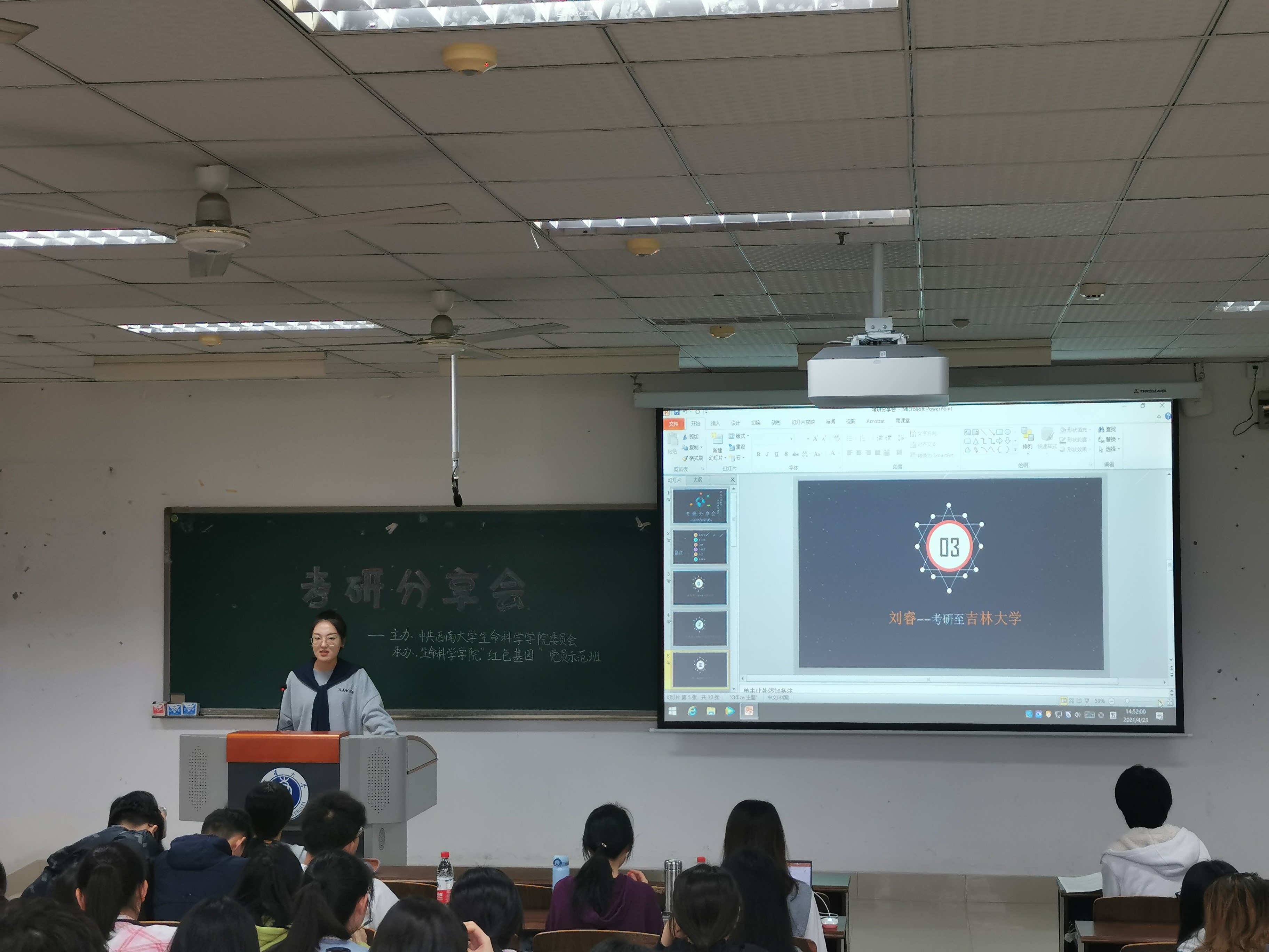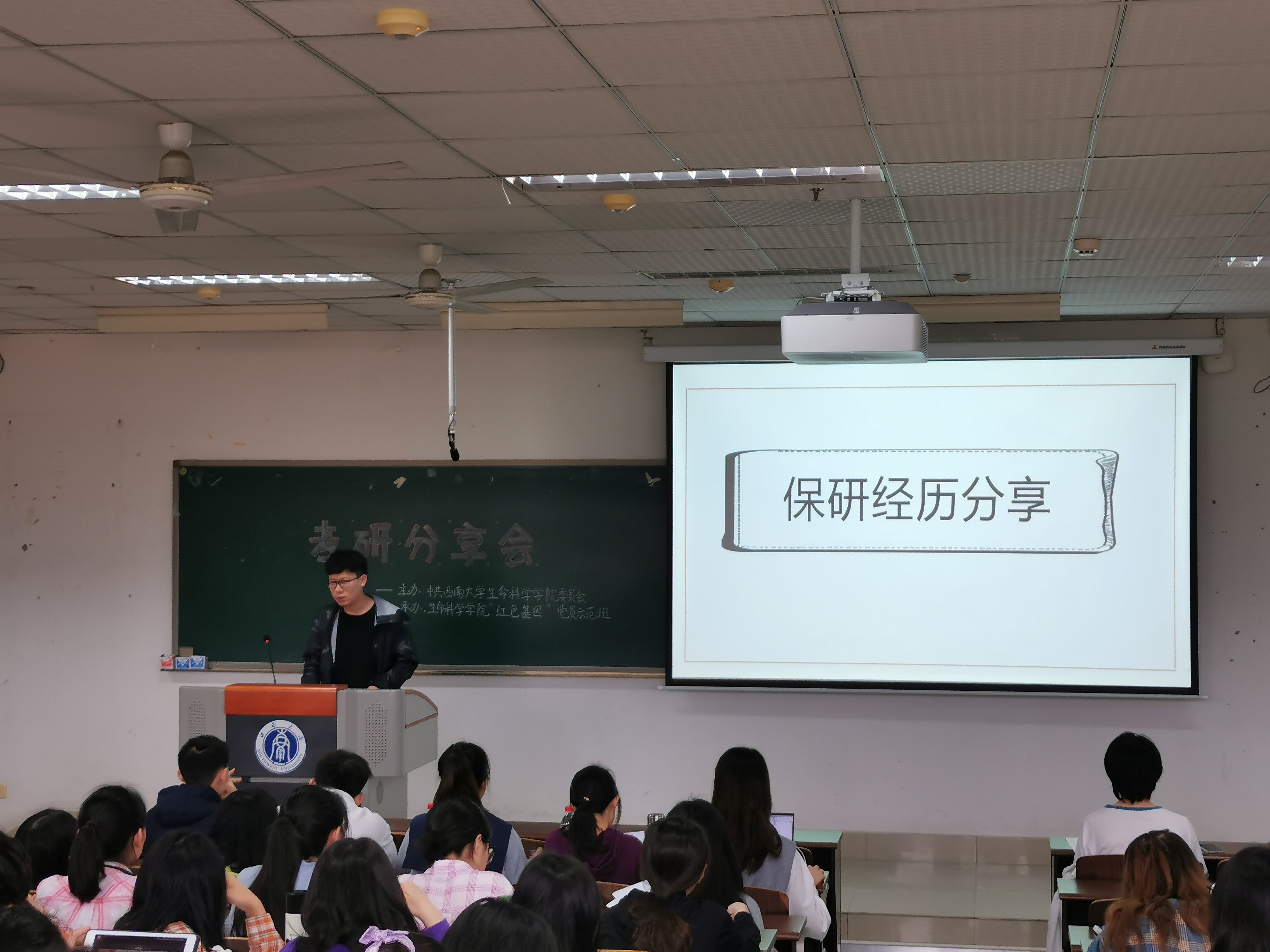 本次会议邀请了推免本校的蒋智勇同学,推免中国科学院的李若溪同学,以及成功考研至吉林大学、南方科技大学、中山大学和四川大学的刘睿,马丽莎,田昊和余崇彰四位同学作为嘉宾进行考研经验的分享。两位推免成功的同学分别就推免本校和外校所需要的条件和准备工作进行了详细介绍。