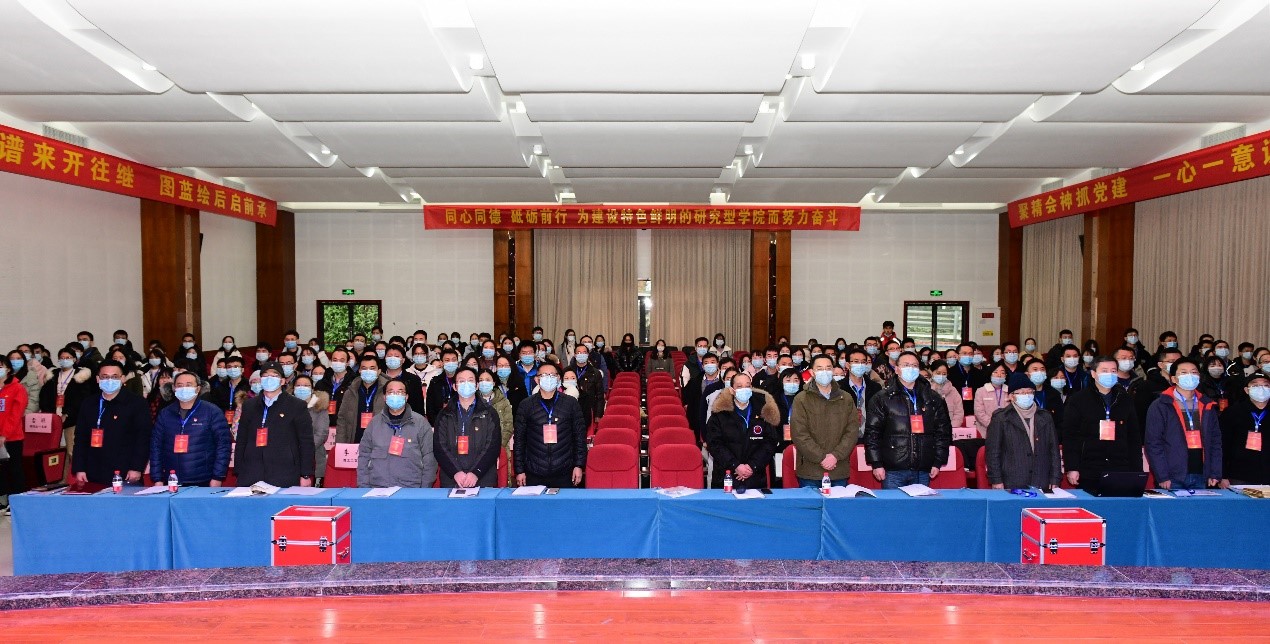 大会在庄严的国歌声中隆重拉开帷幕。学院党委书记蒋寒同志代表学院党委向大会作了题为《凝心聚力,砥砺前行,奋力开创特色鲜明的研究型学院建设新局面》的报告,报告回顾了过去五年主要工作,分析了新时代学院面临的发展形势,提出了奋力开创特色鲜明的研究型学院奋斗目标。蒋寒同志指出,自2016年1月学院党员大会召开以来,学院党的建设扎实推进,思想政治工作务实有效,各项工作成绩喜人,事业发展迈上新的台阶,但同时也应认识到不足,必须采取有效措施解决突出矛盾。蒋寒同志表示,bw必威西汉姆联官网已经站在新的历史起点上,要在国内外大势和高等教育变革中认清形势,谋划未来,抢抓发展机遇,明确发展目标,谱写事业新篇。学院党委将着力推动高质量发展,坚持以习近平新时代中国特色社会主义思想为指导,聚焦立德树人根本任务,聚焦党建工作与事业发展深度融合,聚焦特色鲜明的研究型学院建设,为西南大学建设特色鲜明的世界一流大学作出新的贡献。