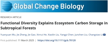 近日,国际著名期刊《全球变化生物学》(Global Change Biology)在线发表了学校bw必威西汉姆联官网李昌晓教授团队的最新研究论文《功能多样性解释亚热带森林生态系统碳储量》(Functional Diversity Explains Ecosystem Carbon Storage in Subtropical Forests)。